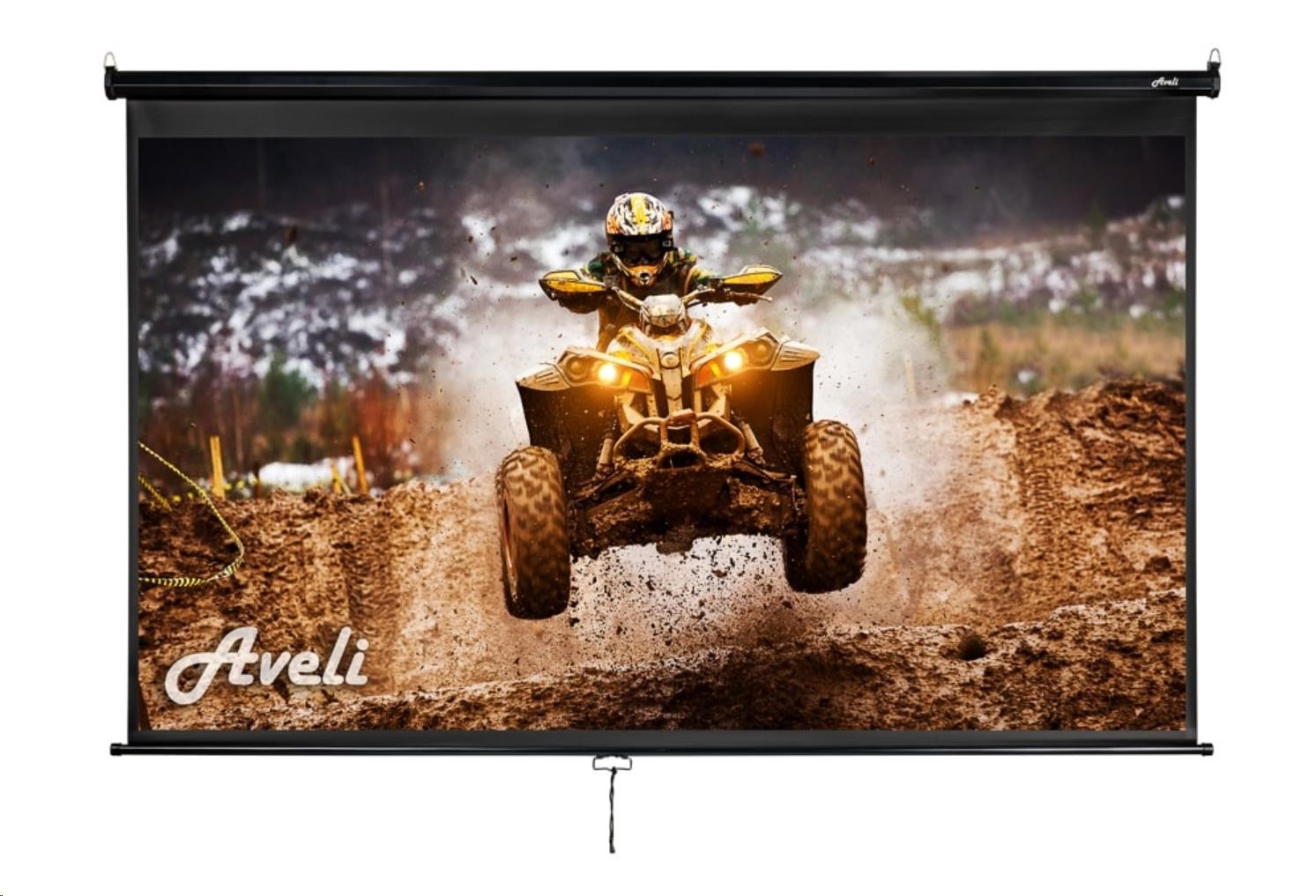 Nástěnné projekční plátno AVELI, 204x115cm (16:9) 92", černý tubus