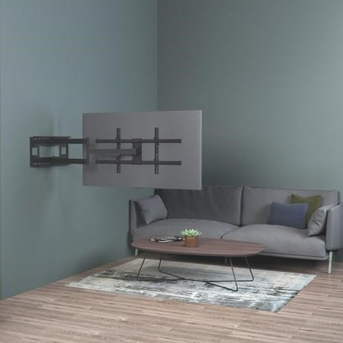 Najdlhší držiak televízie Fiber Mounts Big1 Nastaviteľná vzdialenosť od steny 82mm až 1015mm, otáčanie kolmo k stene Televízor s uhlopriečkou 43-80", naklápanie +5° až -15°, korekcia roviny +/- 3°, podporuje VESA štandardy 200x100 až 800x400, nosnosť 50kg Najdlhší držiak na otáčanie veľkých televízorov aj kolmo k stene. Vďaka nastaviteľnej vzdialenosti od steny 82mm až 1015mm umožňuje držiak Fiber Mounts Big1 otočenie o 90° na obidva smery aj televízorov s uhlopriečkou 43" až 80". Vysoká nosnosť 50kg zabezpečuje bezpečné zavesenie a polohovanie aj naozaj veľkých televízorov. Konštrukcia držiaka Big1 je oceľová, nástenný držiak o rozmeroch 646x289mm zabezpečí vynikajúce rozloženie celej hmotnosti na stenu. V balení nájdete montážny materiál. Záruka 3 roky. Najdlhší otočný držiak na Televízie Fiber Mounts Big1 Technické údaje: nosnosť 50kg pre televízory s roztečou VESA 200x100 až 800x400 zavesenie a otáčanie kolmo k stene Televízora 43" až 80" nastaviteľná vzdialenosť od steny 82mm až 1015mm možnosť naklápať televízor +5° až -15° korekcia roviny obrazovky +/- 3° inštalačný materiál súčasť balenia (viď nižšie) veľmi pevná a bezpečná konštrukcia zaistenie Televízora na držiaku proti vysadeniu materiál oceľ hmotnosť držiaka 13,5kg veľká inštalačná plocha pre rozloženie hmotnosti na stene 646 x 289mm farebné prevedenie čierne záruka 3 roky Fiber Mounts Big1 Vám otočí kolmo na stenu aj veľmi veľké televízie Držiak Fiber Mounts Big1 podporuje VESA štandardy: VESA 200x100 VESA 200x200 VESA 300x200 a 200x300 VESA 300x300 VESA 400x200 a 200x400 VESA 400x300 a 300x400 VESA 400x400 VESA 600x400 VESA 800x400 Najdlhší držiak na televízory Big1 má aj bezpečnostný systém na zabezpečenie televízie na držiaku Inštalačný materiál, ktorý nájdete v balení s držiakom Fiber Mounts Big1: hmoždinky o12x60 6ks vruty do hmoždiniek 8x90 mm 6ks podložky na vruty 6ks šrouby M5x14 4ks šrouby M6x14 4ks šrouby M6x30 4ks šrouby M8x30 4ks šrouby M8x50 4ks univerzálne podložky na šrouby 4ks distančná podložka 5mm 8ks distančná podložka 10mm 8ks V prípade, že dodávané šrouby nebudú vhodné na uchytenie televízora (ani pri použití podložiek alebo dĺžkových válečkov), je nutné zmerať potrebnú dĺžku a priemer šroubov a zakúpiť ich v obchode (napr. železiarstvo, v náradí a pod.). Fiber Mounts Big1 je najdlhší otočný držiak na veľké televízie Televízny držiak Fiber Mounts Big1 je ideálny na možnosť otáčania stredne veľkých a veľkých televízií (43" až 80") na obe strany (napr. z obývačky do kuchyne a pod.). Otáčanie je možné až o 90° na obe strany, teda kolmo k stene. Vynikajúca bezpečnosť a stabilita je zabezpečená silnostennou oceľovou konštrukciou (hmotnosť držiaka 13,5kg), o výborné rozloženie celkovej hmotnosti na stene sa postará veľká inštalačná plocha s rozmermi 646 x 289mm.