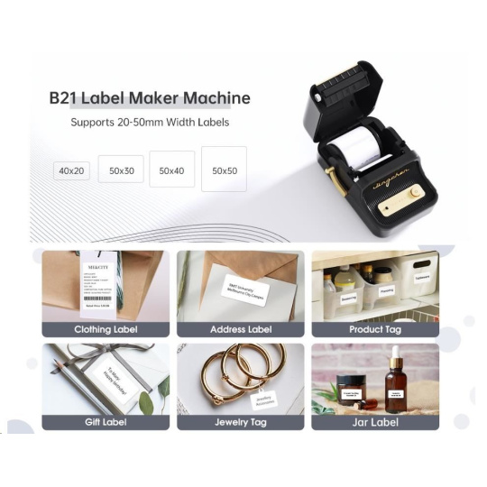 Zabudnite na zdĺhavé a komplikované procesy tlače štítkov. S NIIMBOT B21S je tlač štítkov hračkou vďaka jejakej bezdrôtovej technológii a vynikajúcim funkciám. Táto prenosná tlačiareň štítkov je vybavená dobíjacou lítiovou batériou, ktorá vám umožní tlačiť kdekoľvek a kedykoľvek budete potrebovať po dobu 4 až 5 hodín. S NIIMBOT B21S môžete jednoducho označovať veci v kancelárii, škole, obchode a na mnoho ďalších miestach. Jej kompatibilita s PC a systémami Android a iOS znamená, že môžete tlačiť priamo zo svojho smartphonu alebo tabletu, čo zabezpečuje maximálne pohodlie a efektivitu.