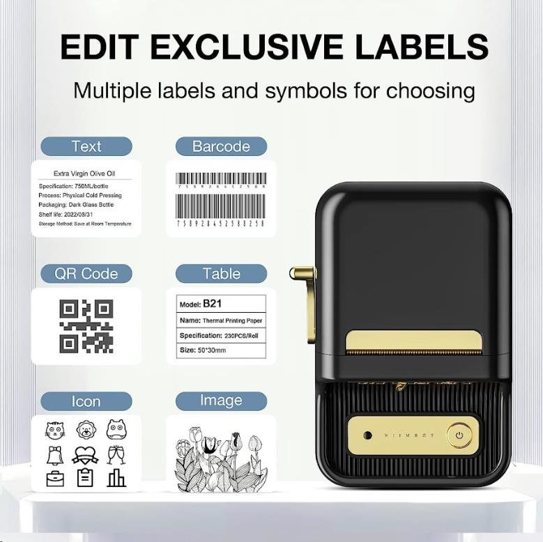 Zabudnite na zdĺhavé a komplikované procesy tlače štítkov. S NIIMBOT B21S je tlač štítkov hračkou vďaka jejakej bezdrôtovej technológii a vynikajúcim funkciám. Táto prenosná tlačiareň štítkov je vybavená dobíjacou lítiovou batériou, ktorá vám umožní tlačiť kdekoľvek a kedykoľvek budete potrebovať po dobu 4 až 5 hodín. S NIIMBOT B21S môžete jednoducho označovať veci v kancelárii, škole, obchode a na mnoho ďalších miestach. Jej kompatibilita s PC a systémami Android a iOS znamená, že môžete tlačiť priamo zo svojho smartphonu alebo tabletu, čo zabezpečuje maximálne pohodlie a efektivitu.