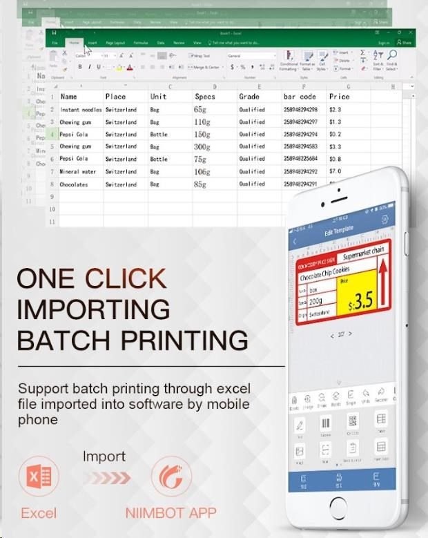 Model Niimbot B21S umožňuje aj tlač priamo z PC. Do aplikácie Niimbot si tiež môžete napríklad naimportovať pripravené dáta z Excelu.
