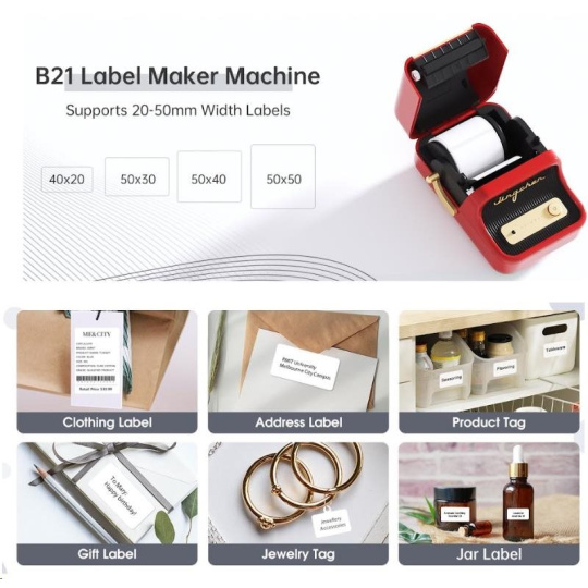 NIIMBOT B21S je tlačiareň štítkov, ktorá spája výkon, pohodlie a kvalitu. S jej jednoduchou obsluhou a vynikajúcimi funkciami vás prekvapí, ako rýchlo a jednoducho môžete vytvárať profesionálne etikety.
