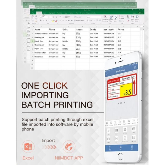 Model Niimbot B21S umožňuje tiež tlač priamo z PC. Do aplikácie Niimbot si tiež môžete naimportovať pripravené dáta z Excelu.