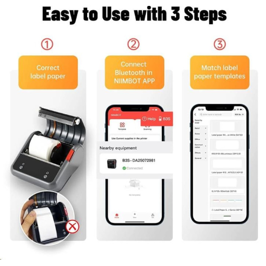 NIIMBOT B3S je tlačiareň štítkov, ktorá kombinuje výkon, pohodlie a kvalitu. S jej jednoduchou obsluhou a vynikajúcimi funkciami vás prekvapí, aká rýchla a jednoduchá je tvorba profesionálnych štítkov.