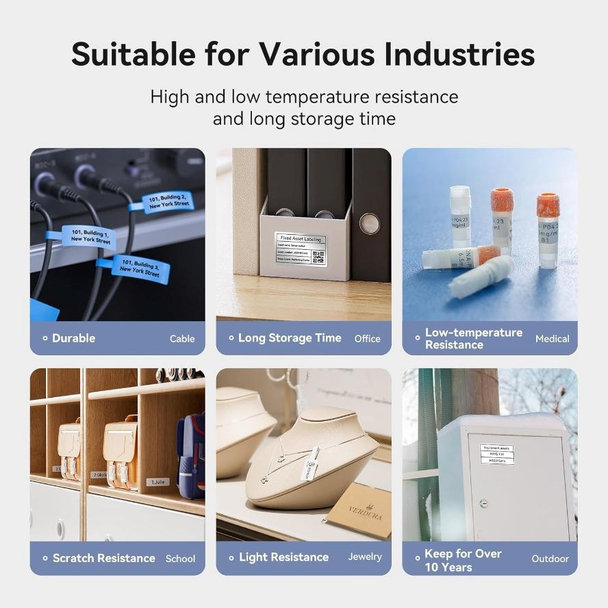 Etikety NIIMBOT sú vyrobené z vysoko odolných materiálov a po vytlačení sú laminované, čo zaručuje ich dlhú životnosť. Sú odolné voči mrazu, oleju, vode a majú zvýšenú odolnosť voči slnečnému žiareniu. Vďaka tomu si môžete byť istí, že vaše etikety zostanú dlho čitateľné a pevne pripevnené.
