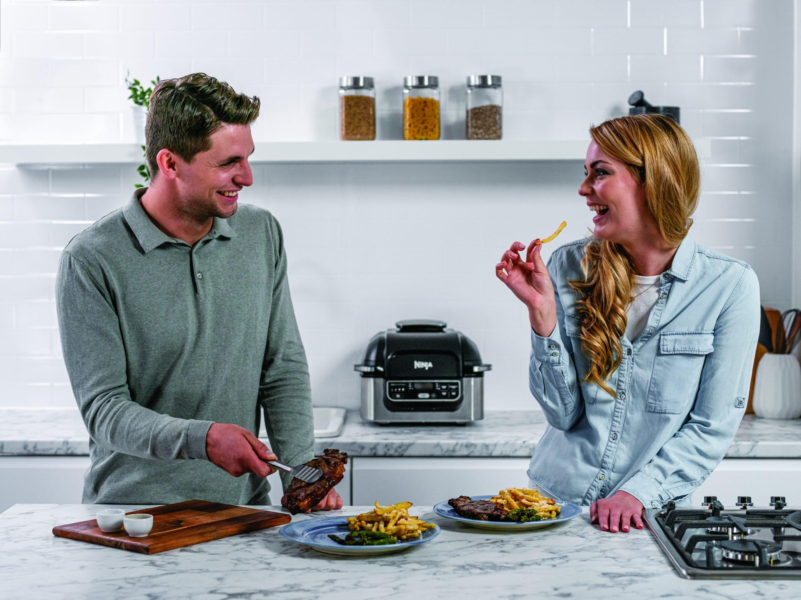 Predstavte si, že si vo vlastnej kuchyni pripravíte ryby, mäso a zeleninu s lahodnou chuťou grilovanou na drevenom uhlí! S grilom a horkovzdušnou fritézou Ninja Foodi môžete ľahko a rýchlo doplniť svojim obľúbeným jedlám autentickú úpravu z grilu na drevenom uhlí.