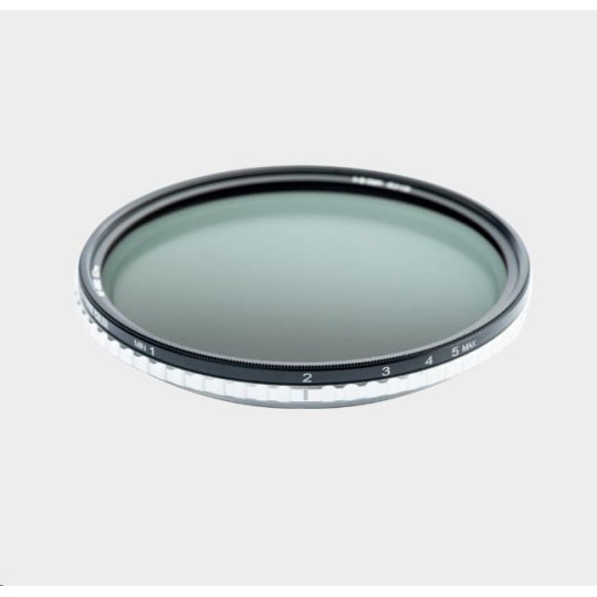 NiSi ND-VARIO 1–5 Stops True Color je variabilný neutrálny šedý filter, ktorý umožňuje zníženie expozície v rozsahu 1 až 5 EV. Hustota (ND faktor) sa plynulo nastavuje otočením predného prstenca filtra, a to s využitím alebo bez použitia priloženej striebornej páčky. Filter má pevné dorazy na koncových pozíciách, vďaka ktorým vždy viete, kde sa pri práci nachádzate.