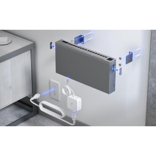 Popis produktu Ubiquiti Pro Max 16 je novým L3 switchem, který nabízí 4x 2.5 Gbps a 12x 1 Gbps porty. Pro připojení pomocí optického rozhraní jsou připraveny 2 SFP+ porty dosahující rychlosti až 10 Gb/s. Switch je napájen přes USB-C konektor 5V DC 25W. Etherlighting technologie Switch podporuje technologii Etherlighting, která umožňuje barevně indikovat lokaci portu, linkovou rychlost, nadefinované typy zařízení, PoE status nebo barevně odlišit jednotlivé VLAN. *pro správnou funkci je doporučeno použít Ubiquiti UniFi Etherlighting Patch kabely Správa přes UniFi Controller Switch nemá webový management, ale je spravován centrálně pomocí UniFi Controlleru s podporou mobilní aplikace UniFi a nabízí rozsáhlou sadu pokročilých přepínacích protokolů a funkcí L2, včetně provozního režimu (přepínání, zrcadlení nebo agregace) na port. UniFi Network Controller a mobilní aplikace umožňují správcům konfigurovat a sledovat prakticky všechny funkce přepínače v grafickém uživatelském rozhraní odkudkoli. Obsah balení • Zařízení • Napájecí DC adaptér • Montážní set Kontakt: Ubiquiti International Holding B.V. Ekkersrijt 3102, 5692 CC Son en Breugel support@ui.com Technická podpora k tomuto produktu je dostupná na emailu rma@discomp.cz, telefonním čísle (+420) 377 477 794, případně odesláním dotazu přes webový formulář. Naše technická podpora je dostupná v této pracovní době. Obchodní informace Dan Pacanda, +420 370 380 965 , dan.pacanda@discomp.cz Technické parametry Konektory a rozhraní Rychlost LAN:(12) 10/100/1000Mbps + (4) 10/100/2500Mbps Optické rozhraní:(2) 1G/10Gbps Ostatní:Dotykový displej Napájení Typ napájení:USB-C Max. spotřeba energie [W]:25 Napájení přes konektor/svorkovnici:5V DC Fyzické charakteristiky Provedení:Na zeď, Desktop, Rackmount Ventilátory:Ne Šasi:Kovové Tlačítka:Reset Provozní teplota [°C]:-5 až 40 Šířka [mm]:325 Výška [mm]:44 Hloubka [mm]:160 Obecné Rychlost přepínání [Gbps]:84 Rychlost předávání paketů [Mpps]:62 Software Management:UniFi Network Funkce:VLAN, DHCP snooping, L3 Výchozí IP adresa:Dynamická z DHCP.