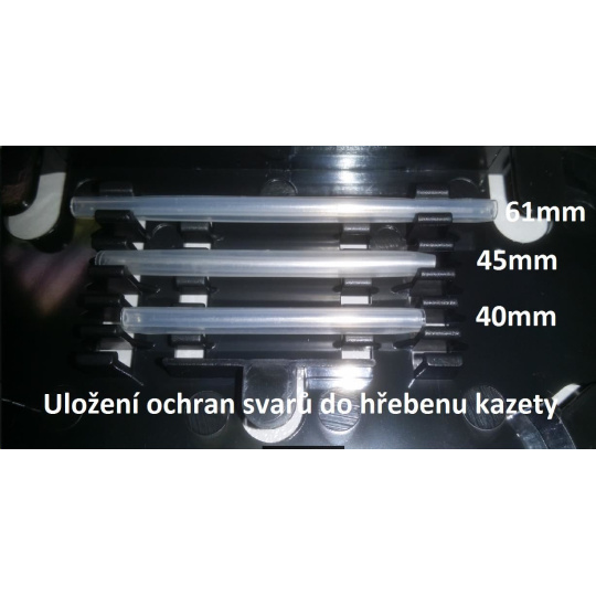 Samozmršťovacie teplo, dĺžka 40 mm, určené na ochranu zvarenca po zváraní. Vystužený 1,5 mm oceľovým drôtom, zabraňuje ohýbaniu.
