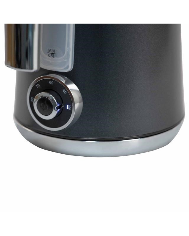 Automatická varná rýchlovarná konvica s možnosťou nastavenia teploty, Elektronická regulácia teploty vodu zahrieva na vopred zvolenú teplotu, Nastavenie 5 rôznych teplôt: 60, 70, 80, 90 a 100 ° C, Objem vody: max. 1,7 l, Varič na odnímateľnom 360 ° otáčateľnom podstavci, Topné teleso prekryté doskou z nerezovej ocele, Ochrana pred ohrevom bez vody, automatické vypnutie, Úložné miesto na sieťovú šnúru v podstavci konvice, Napájanie: 220 - 240V ~ 50/60 Hz, 2 520 - 3 000W
