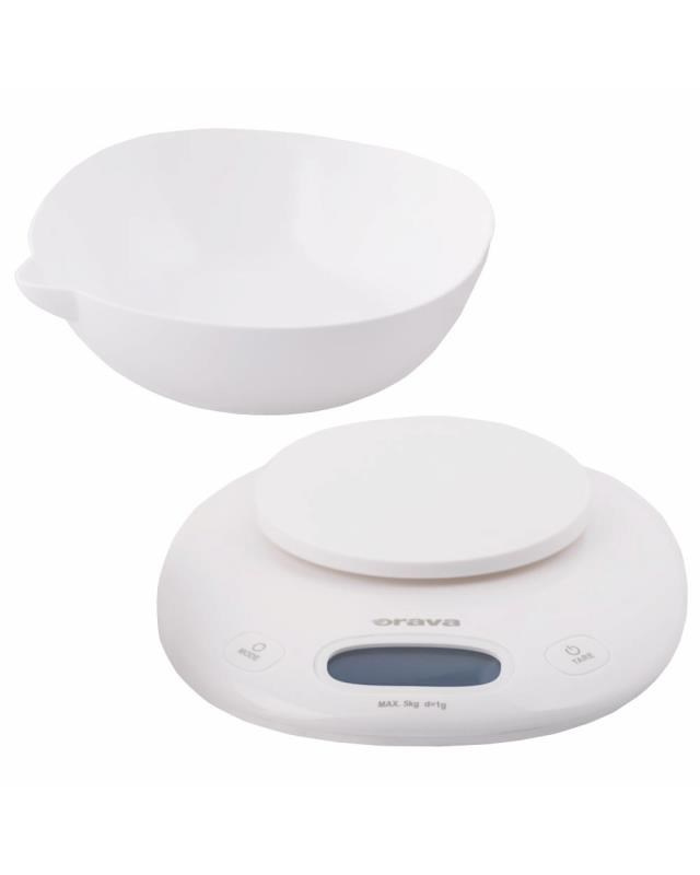 .ORAVA EV-14 digitální kuchyňská váha s miskou, LCD displej, funkce TARE, přesnost 1 g