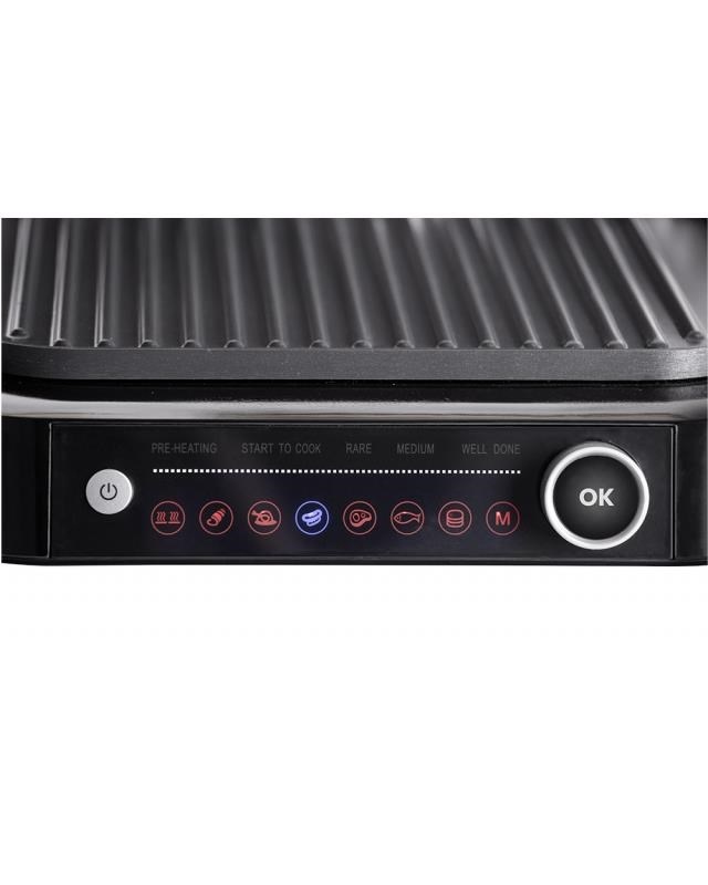 Pre ešte pohodlnejšiu prípravu grilovaných jedál má Grillchef-2 ovládaciu obrazovku s LED displejom, na ktorej si jednoducho navolíte požadovaný režim grilovania. Na výber máte zo 6 programov vrátane funkcie Defrost a manuálneho režimu (M).
