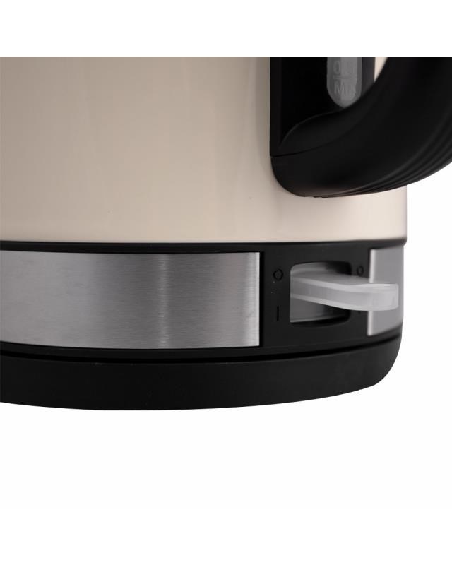Automatická varná kanvica, krémová farba, Objem vody: max. 1,7 l, Napájanie: 220 - 240V ~ 50/60 Hz, 1 850 - 2 200W, VDE zástrčka, Varná nádoba na odnímateľnom 360 ° otočnom podstavci, Topné teleso zakryté doskou z ušľachtilej ocele, automatické vypnutie, Ochrana pred ohrevom bez vody, ukazovateľ napájania, S indikátorom hladiny vody