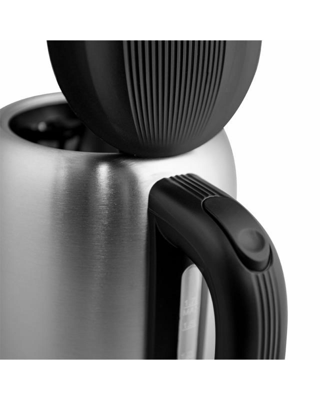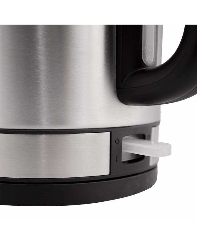 Automatická varná konvice, nerezová, Objem vody: max. 1,7 l, Napájanie: 220 - 240V ~ 50/60 Hz, 1 850 - 2 200W, VDE zástrčka, Varná nádoba na odnímateľnom 360 ° otočnom podstavci, Topné teleso prekryté doskou z ušľachtilej ocele, automatické vypnutie, Ochrana pred prehrievaním bez vody, ukazovateľ napájania, S indikátorom hladiny vody