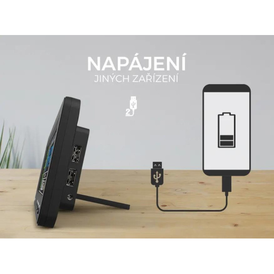Na bočnej strane meteostanice sa nachádzajú dve výstupné USB konektory, ktoré môžete použiť na napájanie ďalších zariadení — napríklad na nabíjanie smartfónu alebo napájanie USB nočnej lampy.