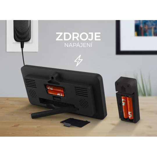 Meteostanicu je možné napájať z vhodného AC adaptéra 5 V (nie je súčasťou balenia). V prípade výpadku elektrickej energie udrží meteostanicu v chode aj 2 batérie (AAA). Bezdrôtový senzor je tiež napájaný dvomi 1,5V batériami (AAA).