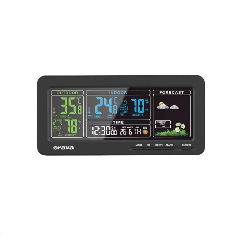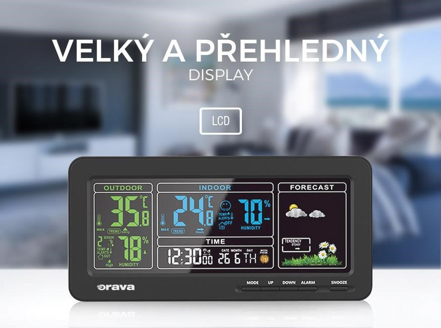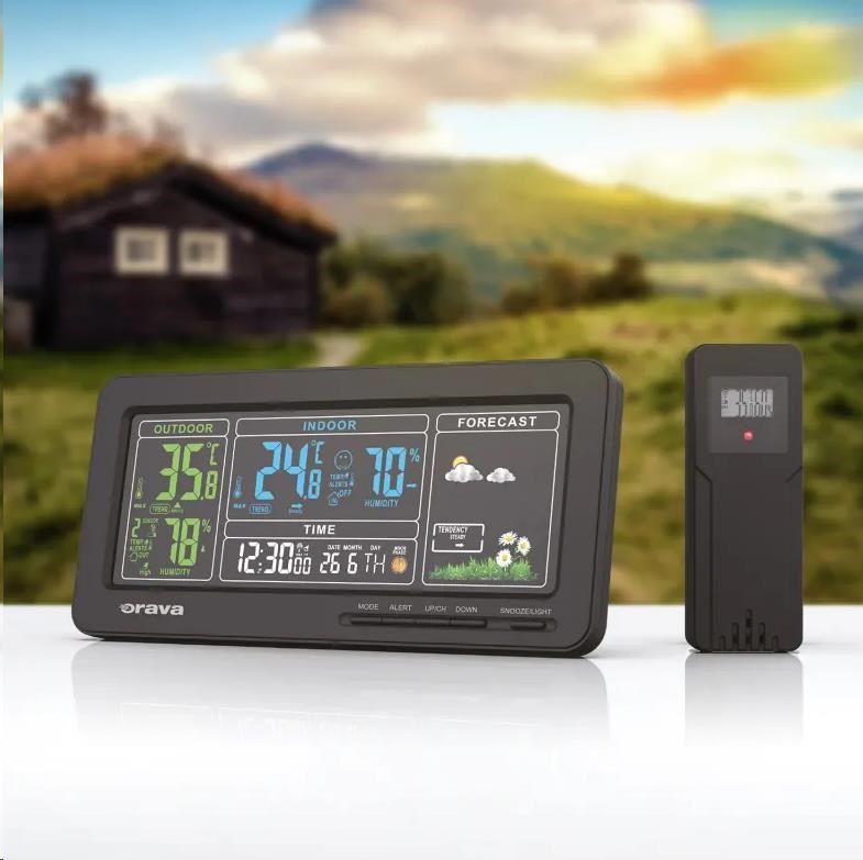 Meteostanica Orava Meteo-1 vás spoľahlivo informuje o tom, aká je teplota v interiéri aj za oknami vášho domova. Na prehľadnom LCD displeji si okrem teploty a vlhkosti prečítate informácie o čase, dátume a predpovedi počasia.