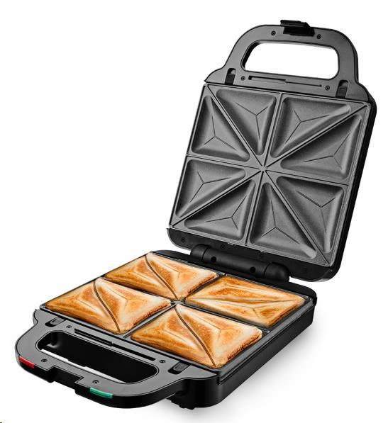 Multifunkčný toastovač 3 v 1, 3 vymeniteľné dosky s kvalitným nepřilnavým povrchom, Sendvičovač pre 4 sendviče, vafle a grilovanie, Funkcia otvoreného grilu, Tepelne izolované držadlo, Jednoduché čistenie, platne umývateľné aj v umývačke riadu, Svetelná signalizácia (napájanie, ohrev) Tepelná poistka, Napájanie: 220 - 240V~ 50Hz, 1 400 W