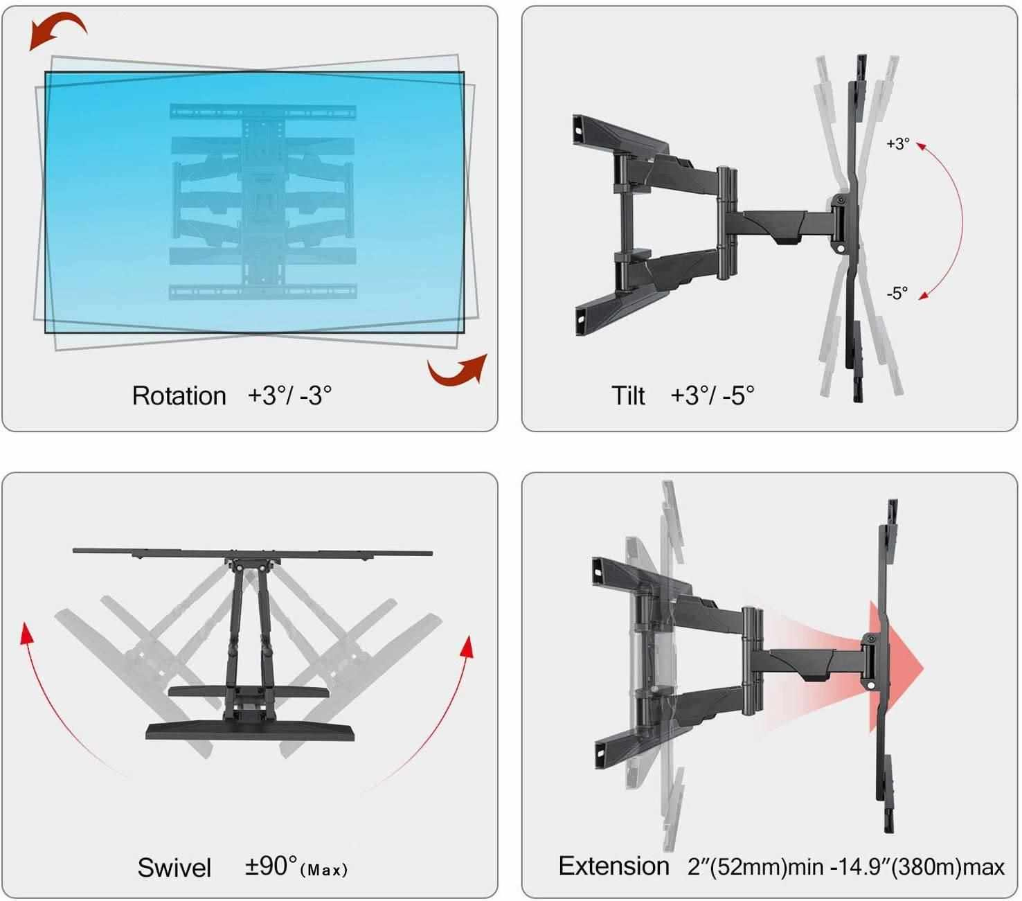 Kvalitný držiak na Tv NB DF600-P6 Kvalitný polohovateľný držiak na Tv 43" až 75", výsuvný 52-380mm, otáčanie do strán +/-60°, sklápačka +3°/-5°, VESA 200x200 až 600x400, nosnosť 45,5kg Otočný držiak televízie, jednoduchá inštalácia na stenu, veľmi kvalitná spoľahlivá konštrukcia. Držiak Tv NB DF600-P6 je ideálny na televízie s hmotnosťou do 45kg a VESA štandardmi od 200x200 do 600x400, veľkosť Tv by mala byť ideálne v rozmedzí 43" až 75". Možnosť vysúvania Tv od steny do vzdialenosti až 38cm a mierneho sklápenia Tv +3° až -5° a otáčania do strán až +/- 60°. V prípade nerovností na stene je možné rovinu televízie upraviť +/- 4°. Farebné prevedenie čierne, balenie vrátane montážneho materiálu, záruka 5 rokov. Vynikajúci nástenný držiak na otáčanie televízie NB DF600-P6 Technické údaje: nosnosť držiaka 45,5kg ideálny na Tv s uhlopriečkou 43" až 75" podpora VESA štandardov 200x200 až 600x400 nastavenie vzdialenosti od steny 52 až 380mm otočenie Tv do strán až +/- 60° možnosť sklápať Tv +3° až -5° regulácia roviny obrazovky +/- 4° úchyty na káble dizajnové krytky nástenného úchytu špičková, veľmi pevná a spoľahlivá konštrukcia materiál oceľ záruka 5 rokov Široká škála polohovania televízie na držiaku Tv NB DF600-P6 Držiak DF600-P6 podporuje VESA štandardy: VESA 100x200 VESA 200x200 VESA 300x200 a 200x300 VESA 300x300 VESA 400x200 a 200x400 VESA 400x300 a 300x400 VESA 400x400 VESA 600x400 Výborný držiak so spoľahlivou konštrukciou bez vôlí a bezúdržbovým prevedením čepov v kĺboch držiaku. Držiak DF600-P6 je vhodný na všetky televízory s hmotnosťou do 45,5kg, ktoré podporujú ktorýkoľvek z vyššie uvedených VESA štandardov.