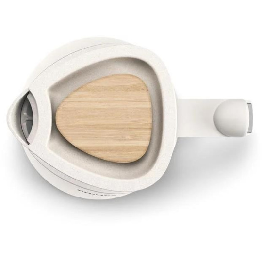 Vyrazte smerom k zelenšej budúcnosti s prvou rýchlovarnou kanvicou na svete vyrobenou z použitých kuchynských olejov! Prevratná metóda spracovania kuchynských zvyškov dala vzniknúť špeciálnemu bioplastu, ktorý je mimoriadne odolný a nezávadný. Kanvica má minimalistický nadčasový dizajn, ktorý kombinuje recyklované a prírodné materiály. Skvelo sa hodí do každého interiéru. Kanvica má objem 1,7 l a vďaka ľahko čitateľnému indikátoru hladiny okamžite pripraví požadované množstvo vody. Základňa kanvice je otočná o 360° a umožňuje jednoduchú manipuláciu. Dolať vodu je možné pod prúdom tečúcej vody. Prístroj disponuje radom energeticky úsporných funkcií pre váš väčší pokoj a šetrnosť k prírode.
