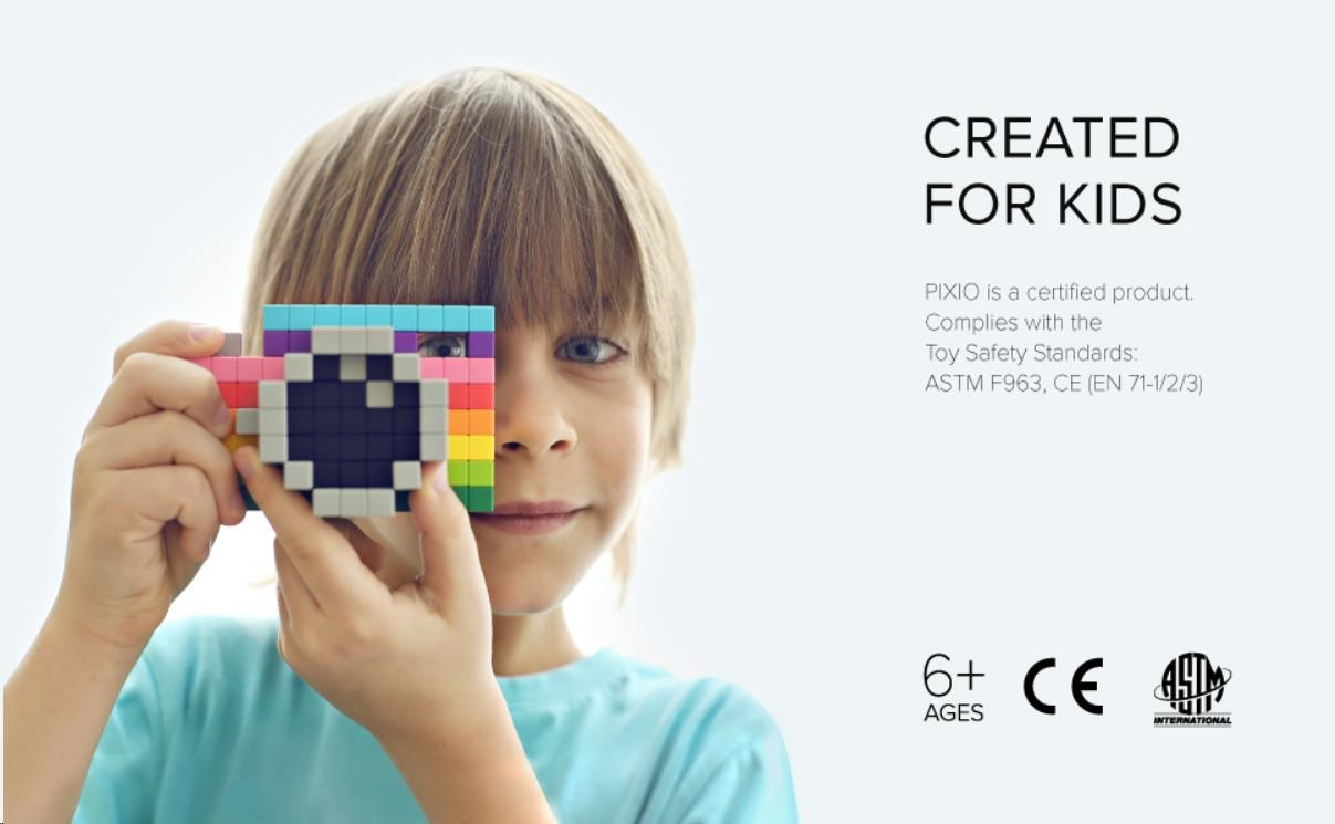 PIXIO je certifikovaný výrobok v súlade s bezpečnostnými normami CE a ASTM pre hračky. Môže byť