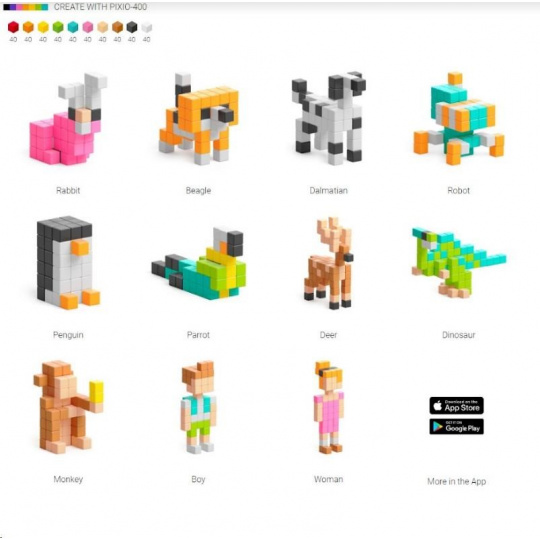 DIZAJNOVÁ SÉRIA PIXIO-400 obsahuje 400 PIXIO blokov v desiatich dokonale zladených farbách,