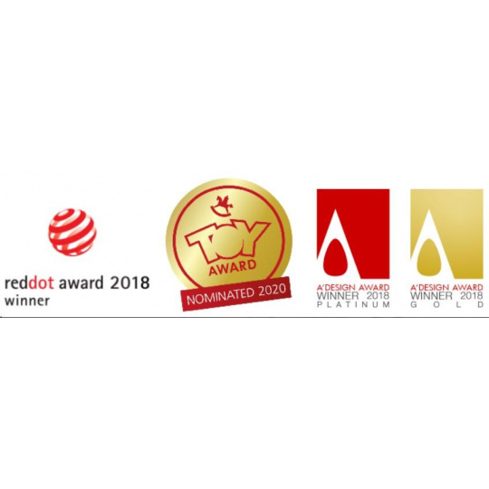 - Certifikovaný produkt s oceneniami za dizajn – Red Dot Design Award, Toy Award, A ´DESIGN