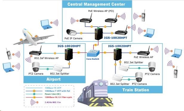 Planet IGS-10020HPT PoE switch 8x 1000Base-T, 2x SFP, 802.3at 270W, IP30, -40 až 75°C, SNMP, IGMPv3, IPv6 Inteligentné prepínače pre priemyselný Ethernet sú určené do náročných prevádzkových podmienok so širokým rozsahom prevádzkových teplôt, neistým napájaním a častými otrasmi. Zároveň poskytujú vynikajúce možnosti viacnásobného prepojenia na dosiahnutie robustného prepojenia systému s veľmi nízkym časom obnovy. IGS-10020HPT je vybavený pre redundanciu okrem známej metódy Spanning Tree (ktorej čas obnovy sa pohybuje v sekundách) najmä špecializovanou funkciou "Redundant ring", ktorá má čas obnovy a nájdenia novej cesty do 300 ms. Ako prepínač PoE môže priamo napájať až 8 zariadení IEEE 802.3at, a preto je ideálny pre aplikácie so zníženou dostupnosťou energie. Prepínače radu IGS sa ľahko inštalujú na štandardnú lištu DIN alebo priamo na stenu a umožňujú nasadenie známej technológie Ethernet aj v priemyselnom prostredí. Sú vhodné aj na inštaláciu vo vonkajších krytoch s veľkými výkyvmi prevádzkových teplôt (typicky bezdrôtové aplikácie a aplikácie MAN ISP). Vlastnosti: - 8 portov 1000Base-T, prepínanie, plný duplex (1000/2000 Mb/s), automatické vyjednávanie (10/100/1000 Mb/s), automatická detekcia priameho/krížového kábla na každom porte - pre všetky PoE IEEE 802.3at injektory so zaťažiteľnosťou 30 W/port, spolu až 270 W - 2 porty SFP na inštaláciu modulov 1000Base-SX/LX/BX alebo 100Base-FX - Priepustnosť: zbernica 20 Gb/s, 14,8 Mp/s (64B) - Podpora Jumbo Frame do 9 kB, 8k MAC adries, 4Mbitová vyrovnávacia pamäť - 255 VLAN IEEE 802.1Q, siete založené na MAC alebo protokole VLAN, VoIP VLAN - port trunking IEEE 802.3ad LACP - IGMP v1,v2,v3 až do 256 multicast skupín, režim IGMP querier - 8-úrovňová prioritizácia prevádzky QoS podľa portov, DSCP/ToS, 802.1p alebo 802.1Q tagy - podpora Spanning Tree IEEE 802.1d, Rapid Spanning Tree IEEE 802.1w - IP/MAC ACL (access control list) do 123 pravidel, MAC/IP binding - DHCP snooping - port shaper - administrace Web/SNMPv3 s podporou zabezpečeného přenosu SSH/SSL - podpora IPv4/IPv6 - PoE scheduler pro možnost zapínání/vypínaní napájení podle časového plánu - pole LED indikátorů pro diagnostiku provozu - instalace na DIN lištu, montážní díl součástí - instalace na zeď, montážní díl součástí - krytí IP30 - napájení: 48V DC redundantní, připojení možné ze dvou různých zdrojů (nejsou součástí balení); vlastní příkon do 30W - ochrana proti přepólování, připojení napájení na svorkovnici, umístění na spodním panelu (nepřekáží při montáži na zeď) - přepěťová ochrana napájení do 6kV proti napěťovým špičkám (EFT) - přepěťová ochrana LAN portů do 6kV proti elektrostatickému náboji (ESD) - spínací poplachové relé (24V/1A) při výpadku primárního napájení - zařízení je odolné proti pádu (IEC-60068-2-32) z výšky 7.