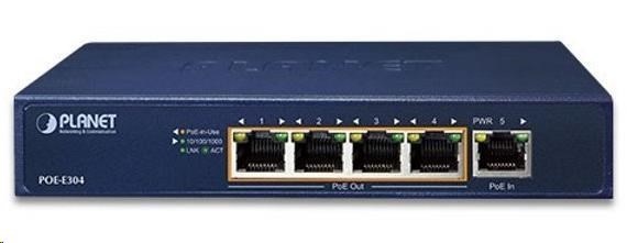 Planet POE-E304 PoE extender, 1xPoE-in, 4xPoE-out 65W, 802.3bt/at/af, Gigabit
