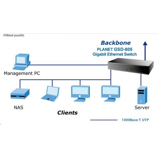 Planet switch GSD-805 10/100/1000 (8x1000BASE-T), interní napájení, kov