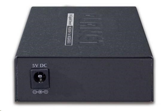 Jednoduchý mediálny konvertor vybavený kovovým konektorom RJ-45 s rýchlosťou 100/1000/2,5G/5G/10G a optickým portom SFP+ s rýchlosťou až 10GBASE. Je vhodný na použitie v sieťach, kde sa vyžaduje extrémne vysoká šírka pásma, ako sú dátové centrá, cloudové úložiská alebo infraštruktúra operátorov. Vďaka spoľahlivosti sú zaručené vysoké prenosové rýchlosti bez rizika straty paketov pri extrémnych rýchlostiach. Samozrejmosťou je ochrana do 6 KV DC ESD. Ďalšou výhodou je nízka spotreba energie 3,75 W pri plnom zaťažení. ZÁKLADNÉ ŠPECIFIKÁCIE Fyzické vlastnosti Porty: 1 x RJ-45 100/1000/2,5G/5G/10GBASE-T, 1 x SFP+ 10GBASE-XR Podpora prenosu: 16K JumboFrame Priepustnosť: zbernica 20 Gb/s, prevádzkovo 2,48 Mpps (64B) Tabuľka záznamov: 9K MAC adries Konštrukcia: vnútorná Napájanie: 5V DC, max. 2A., celkový príkon do 3,75 W Ochrana: ESD 6 KV DC Prevádzková teplota: 0 až 50 °C Rozmery: 94 x 70 x 26 mm Hmotnosť: 180 g..