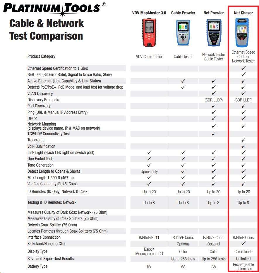Stránky produktov: https://www.platinumtools.com/products/kits/net-chaser-ethernet-speed-certifier-network-tester-tnc950ar/ Manuál