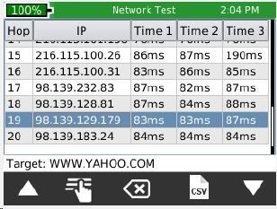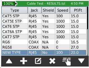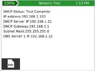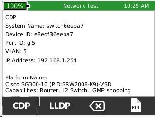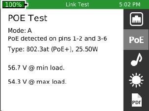 Identifikuje chyby v kábli (nesprávne zapojenie, vymenené páry, vzdialenosť od neukončeného kábla, skraty a poruchy s vysokým odporom.Testy je možné uložiť ako súbory PDF alebo CSV pre jednoduchú dokumentáciu.
