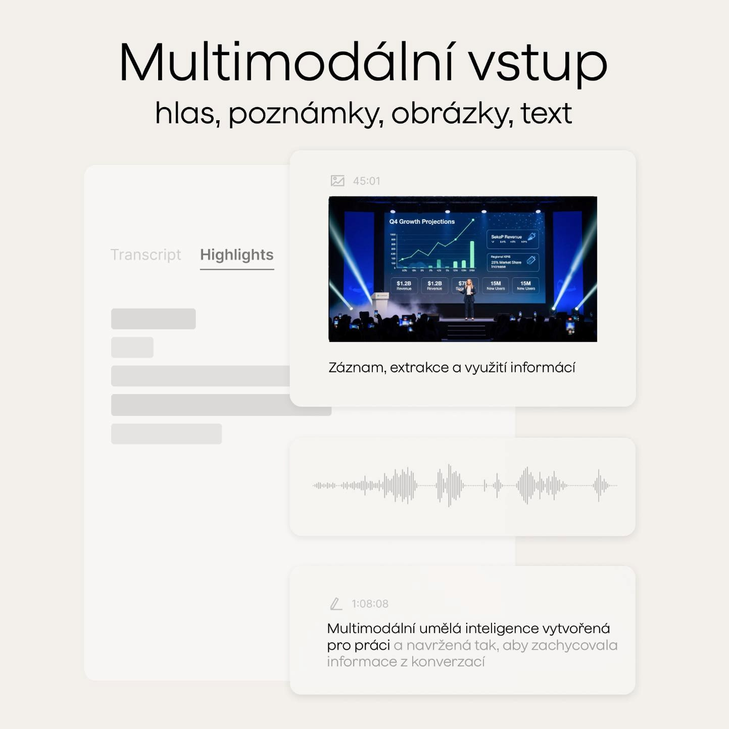 • Váš inteligentný AI asistent a partner: záznam, prepis, súhrn, organizácia, dedukcia