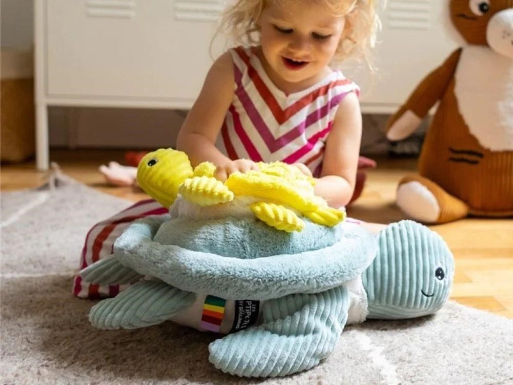 Plyšové zvieratko v podobe veľkej, mäkkej a úžasne hebkúčkej želvy poteší dievčatká aj chlapcov. Plyšová želva, vhodná pre bábätká od narodenia aj staršie deti, je krásnou hračkou na zábavu aj na mazlenie. Veľký plyšák môže byť príjemným vankúšikom, zvieracím kamarátom do postieľky aj do auta, parťákom pre detské hry. Vybrať si môžete z viacerých farebných variantov.