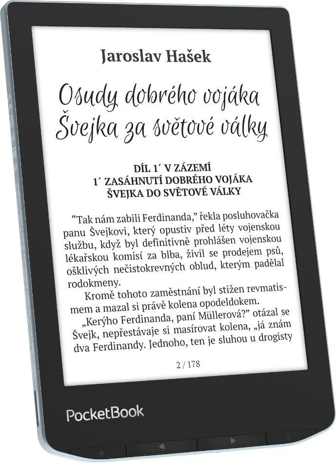 PocketBook Verse je kompaktné zariadenie, ktoré váži len 182 g a je dokonalou kombináciou mechanických ovládacích tlačidiel a dotykovej obrazovky