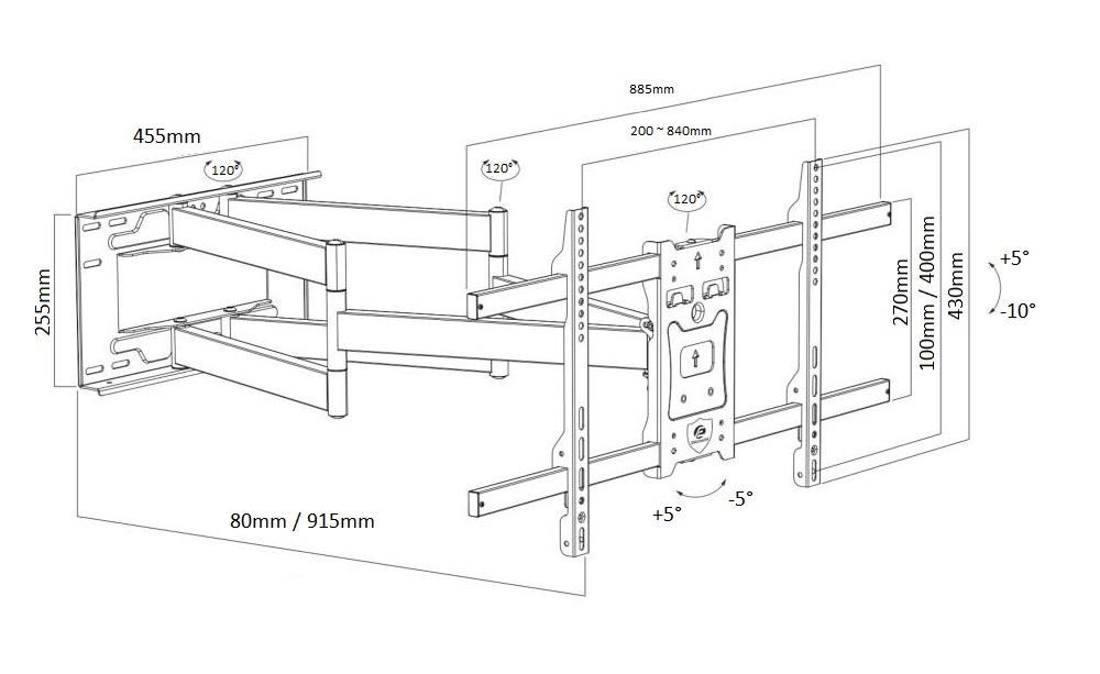 Poctivý držiak na televízor Ergosolid ONYX-30 Kvalitný nástenný držiak na TV 43-90", výsuvný 80-915mm, otočný +/-65°, náklon +5°/-10°, korekcia roviny +/-5°, VESA 200x100 až 800x400, nosnosť 50kg Nástenný držiak poctivej konštrukcie pre spoľahlivé zavesenie všetkých typov a značiek televízorov. Držiak Vám umožní televíziu nastaviť od steny do vzdialeností v rozmedzí 80mm až 915mm. Otáčanie do strán bude možné minimálne o 60° na každú stranu, náklon je možný v rozmedzí +5°až -10°. Pre uľahčenie inštalácie má držiak možnosť korekcie roviny obrazovky až o 5° na každú stranu. Celá konštrukcia držiaka je vyrobená z poctivej ocele a ani pri maximálnom vysunutí a maximálnom zaťažení nevznikajú žiadne voľné a nedochádza k provešeniu ramien. Inštalačná nástená plocha s rozmermi 455x255mm je dostatočne veľká pre spoľahlivé uchytenie na stenu a výborné rozloženie celkovej hmotnosti na väčšiu plochu. Držiak podporuje VESA štandardy 200x100 až 800x400 a zavesiť na neho môžete televízory s hmotnosťou až 50kg. Farba je čierna. Na držiak poskytujeme záruku 5 rokov. Nástenný extra dlhý výsuvný držiak poctivej konštrukcie na televízie 43-90" Ergosolid ONYX-30 Technické údaje: nosnosť 50kg podporuje VESA 200x100 až 800x400 ideálny na televízory s uhlopriečkou 43" až 90" nastaviteľná vzdialenosť od steny 80mm až 915mm otočenie na obe strany až +/- 60° nakláňanie dolu až o 10° alebo hore až o 5° korekcia roviny obrazovky až +/- 5° inštalačná plocha o rozmeroch 455x255mm vynikajúca kvalita oceľová silnostenná konštrukcia inštalačný materiál je súčasťou balenia farbené prevedenie čierne záruka 5 rokov Kvalitná konštrukcia a naozaj rozsiahla možnosť polohovania sú prednosťou televízneho držiaku Ergosolid ONYX-30 TV držiak Ergosolid ONYX-30 podporuje tieto VESA štandardy: VESA 200x100 VESA 200x200 VESA 300x200 a 200x300 VESA 300x300 VESA 400x200 a 200x400 VESA 400x300 a 300x400 VESA 400x400 VESA 600x400 VESA 800x400 Na televízny držiak Ergosolid ONYX-30 môžete zavesiť všetky typy, značky a veľkosti televízorov, ktoré majú hmotnosť maximálne 50kg a ktoré podporujú ktorýkoľvek z vyššie uvedených VESA štandardov. Univerzálny držiak na LCD LED plazma OLED QLED televízie 43-90" Ergosolid ONYX-30 V balení nájdete tento inštalačný materiál: šrouby M4x14mm 4ks šrouby M6x14mm 4ks šrouby M6x30mm 4ks šrouby M8x20mm 4ks šrouby M8x45mm 4ks malé distančné válečky 4ks veľké distančné válečky 4ks univerzálne podložky 4ks podložky na šrouby 5ks vruty do hmoždiniek 8x60mm 5ks hmoždinky O10x50mm 5ks stahovacie pásky na suchý zips 2ks (fixácia káblov na držiaku) Televízny držiak poctivej konštrukcie a vynikajúcej kvality Ergosolid ONYX-30 dodávame vrátane inštalačného materiálu Držiaky TV Ergosolid ONYX-30 poskytujú veľkú variabilitu polohovania obrazovky, vynikajúce spracovanie a úplne bezpečné zavesenie televízora za dostupnú cenu. Tieto držiaky vydržia naozaj mnoho rokov bez nutnosti akýchkoľvek opráv a vďaka univerzálnosti sú vhodné aj v prípade zakúpenia novej televízie. Stanú sa súčasťou Vášho domova.