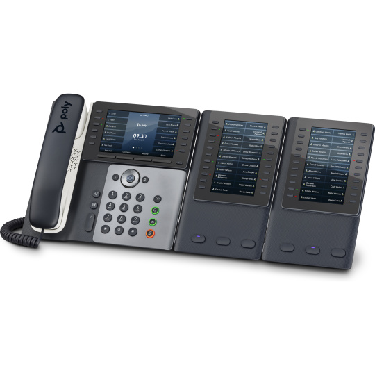 | Správa zabezpečenia | Podpora syntaxe URL s heslom; TLS (Transport Layer Security); Šifrovanie Wi-Fi: WEP, WPA-Personal, WPA2-Personal, WPA2-Enterprise s 802.1x (EAP-TLS, PEAP-MSCHAPv2); Šifrovanie médií SRTP pomocou 256-bitového šifrovania AES Poskytovanie prostriedkov Poly Zero Touch; Poly Lens; Cloudová správa služby správy zariadení Polycom pre poskytovateľov služieb (PDMS-SP); SDP Podpora znakov Unicode UTF-8; Nastaviteľný stojan na stôl (2 pozície); |