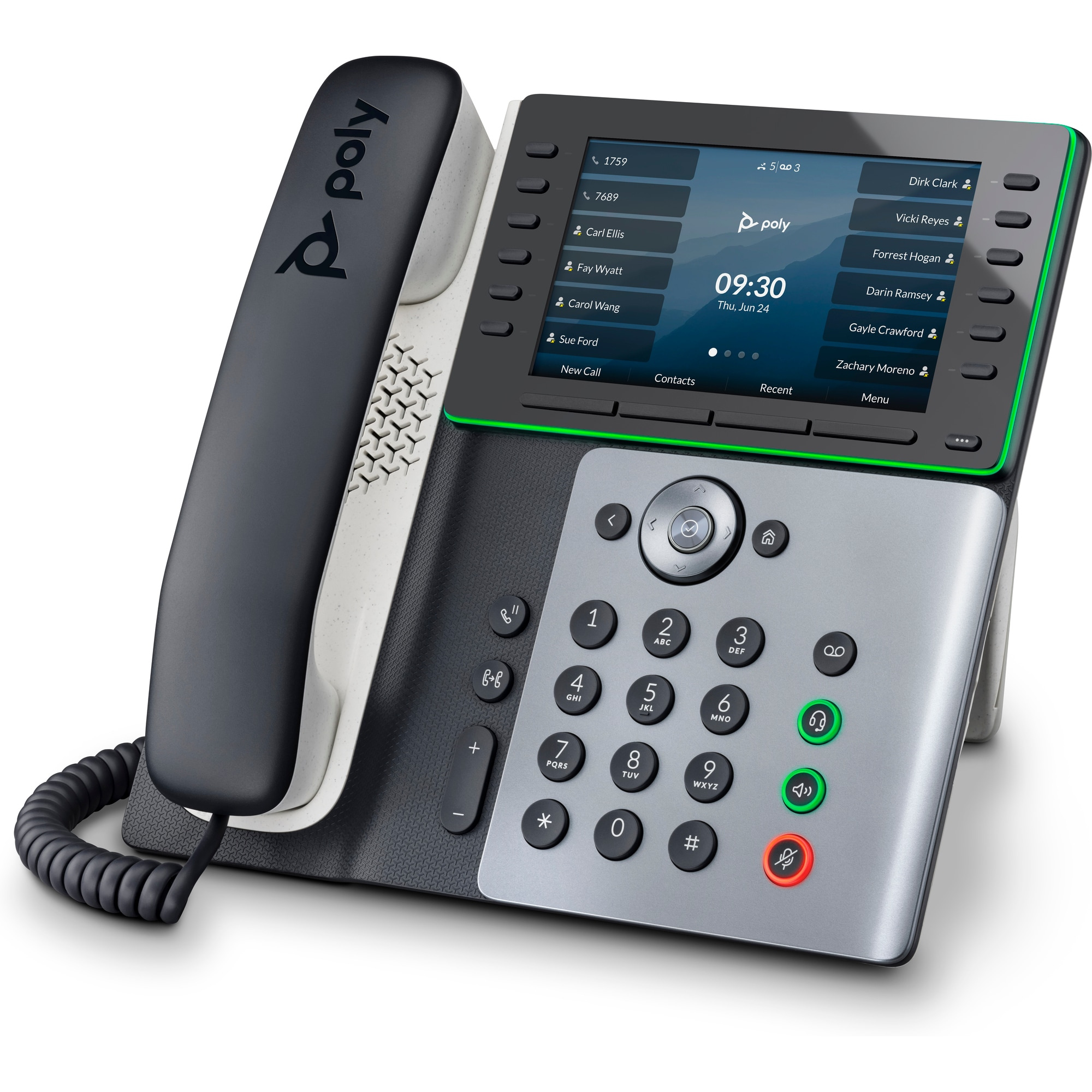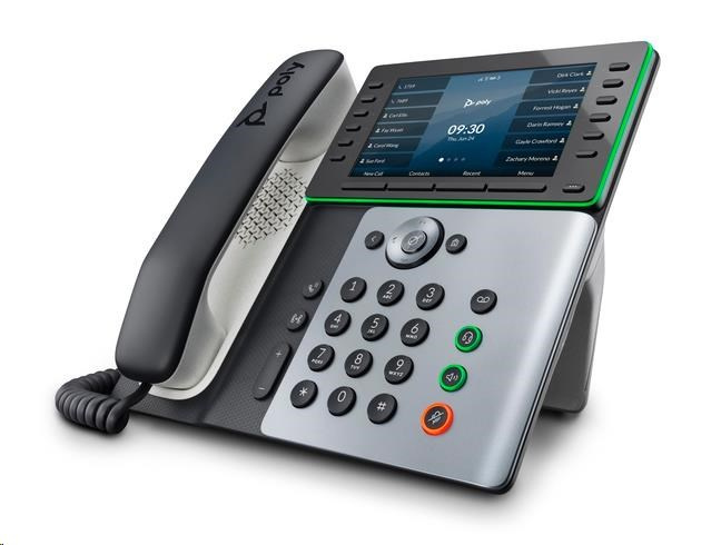 | Správa zabezpečenia | Podpora syntaxe URL s heslom; TLS (Transport Layer Security); Šifrovanie Wi-Fi: WEP, WPA-Personal, WPA2-Personal, WPA2-Enterprise s 802.1x (EAP-TLS, PEAP-MSCHAPv2); Šifrovanie médií SRTP pomocou 256-bitového šifrovania AES Poskytovanie prostriedkov Poly Zero Touch; Poly Lens; Cloudová správa služby správy zariadení Polycom pre poskytovateľov služieb (PDMS-SP); SDP Podpora znakov Unicode UTF-8; Nastaviteľný stojan na stôl (2 pozície); |
