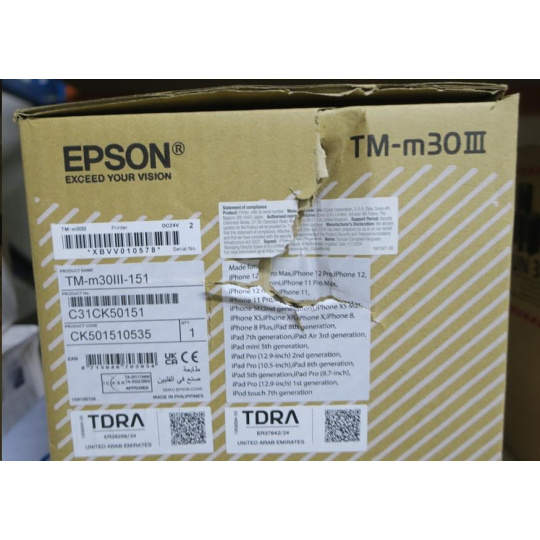 .POŠKOZENÝ OBAL - Epson TM-m30III, USB, USB-C, BT, Ethernet, Wi-Fi, 8 dots/mm (203 dpi), cutter, white
