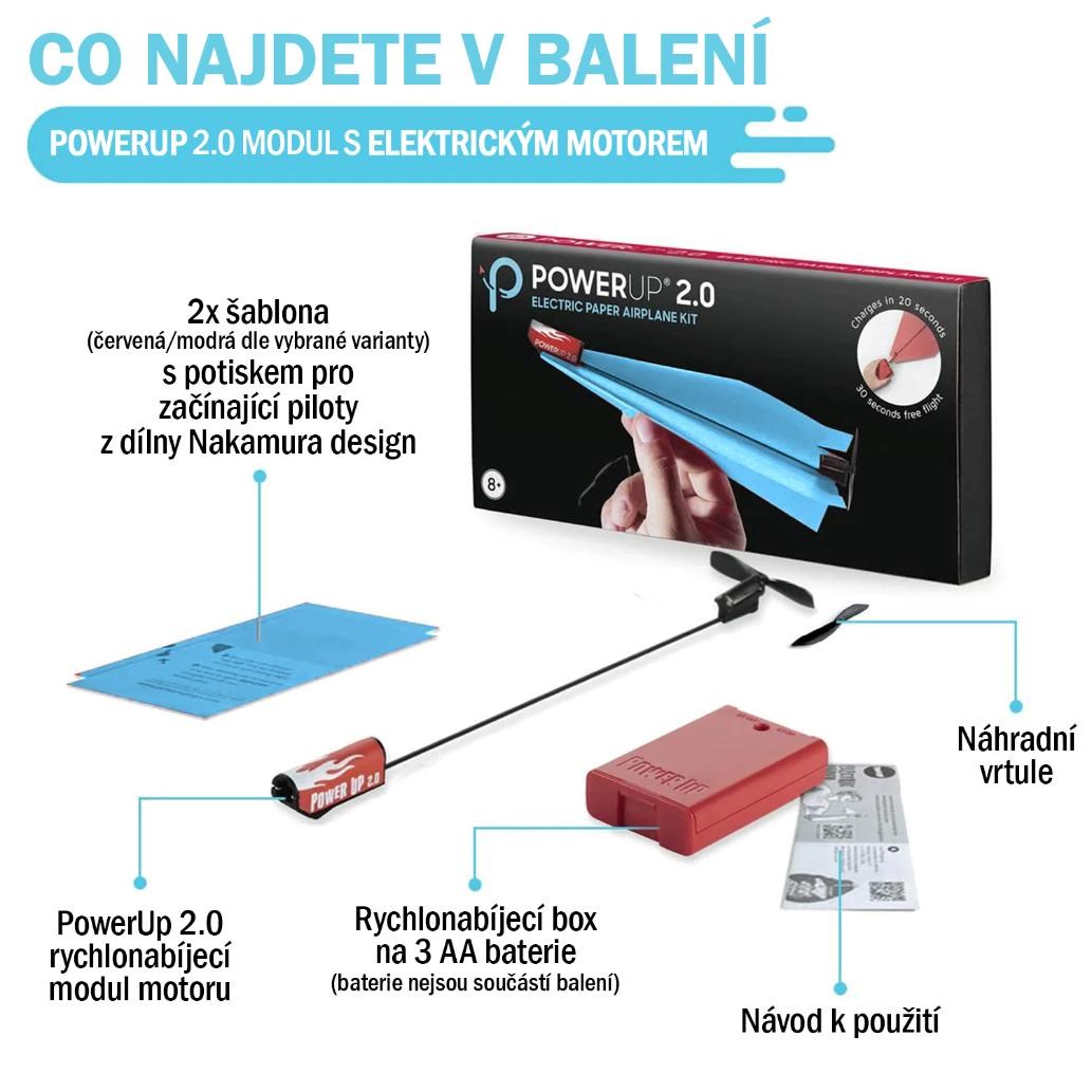 Skladanie papierových lietadiel baví každú generáciu. Sada PowerUp 2.0 BLUE vybaví obyčajné papierové lietadlá vlastným elektrickým pohonom, vďaka ktorému ostanú vo vzduchu dlhšie ako pol minúty a uletia desiatky metrov.