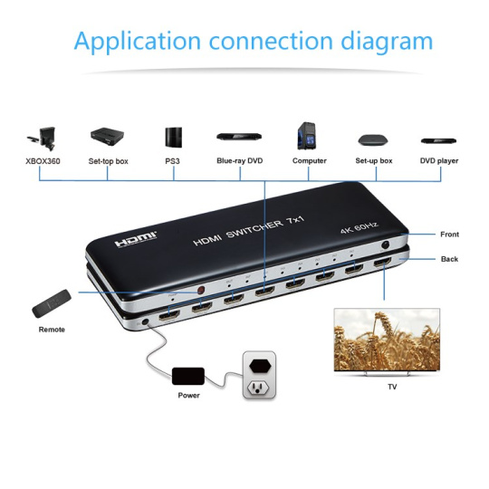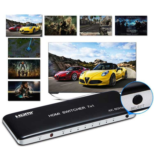 PremiumCord 4K@60hz HDMI switch 7:1 plastový s dálkovým ovladačem