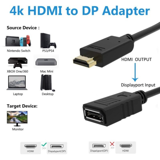 PremiumCord HDMI na DisplayPort Male/Female adaptér s USB napájaním - Vstupný konektor: HDMI /Male - Výstupné konektory: DisplayPort /Female - Prevádza signál HDMI na signál DisplayPort - Na vstupe HDMI 1.4 prijímač - rýchlosť prepojenia do 2.97 Gb/s/dátový pár. - Farebná hĺbka až 16 bitov na farbu - Časovanie 3D videa - Výstup kompatibilný s DP 1.2 - Rozlíšenie videa do 4Kx2K @ 30 Hz; 1920 x 1080 @ 120 Hz. - Zvuk 7.1 až do vzorkovacej frekvencie 192 kHz. - Nízka spotreba energie, aktívny výkon 500 mW a pohotovostný režim 25 mW - Napájanie cez konektor USB - Farba : čierna..