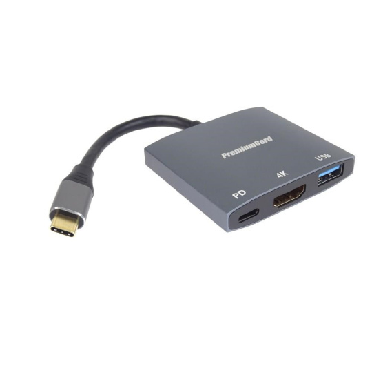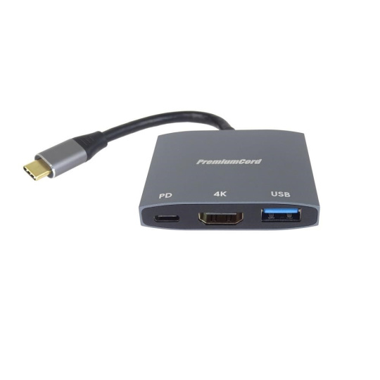 PremiumCord adaptér USB-C na HDMI, USB3.0, PD, 4K a FULL HD 1080p rozlíšenie