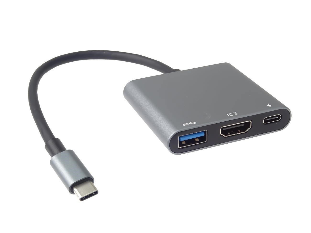 PremiumCord Adaptér USB-C na HDMI + USB3.0 + PD, rozlíšenie 4K a FULL HD 1080p