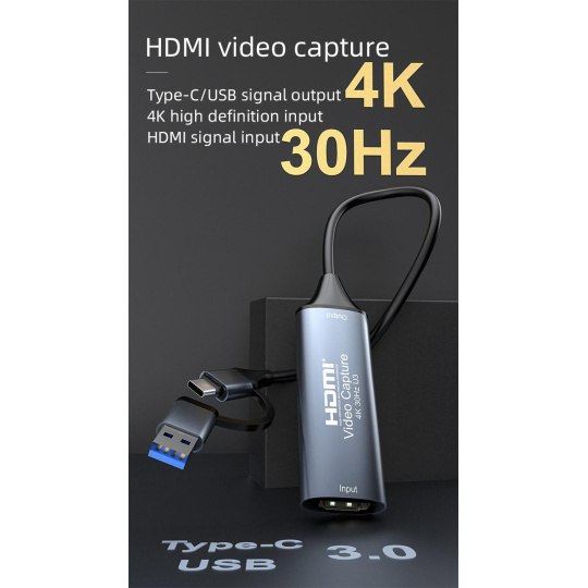 - Vysoké rozlíšenie nahrávania FULL HD 1080P pri 60Hz, podporuje maximálne vstupné rozlíšenie 3840 × 2160 pri 30 Hz, maximálne výstupné rozlíšenie FULL HD 1920 × 1080 pri 60 Hz.