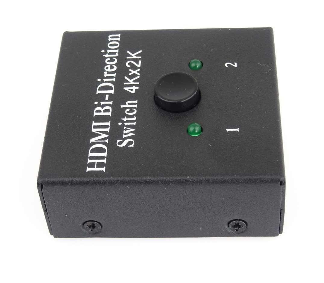 - Obousmerný 2x1 / 1x2 HDMI prepínač je možné použiť dvoma rôznymi spôsobmi: pripojiť 2 vstupné zdroje s 1 výstupným displejom alebo 1 vstupný zdroj so 2 displejmi (funguje iba na 1 obrazovke, nie súčasne).