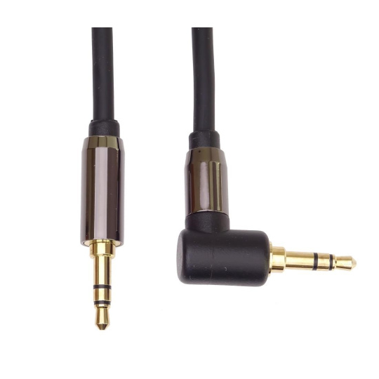 PremiumCord HQ stínený kábel stereo Jack 3,5 mm - Jack 3,5 mm zahnutý 90° 3m