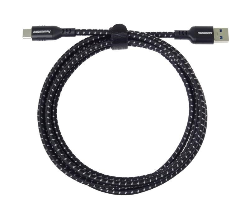 PremiumCord kábel USB-C - USB 3.0 A (USB 3.2 generácia 1, 3A, 5Gbit/s) 1m bavlnený opletenie a kovové hliníkové konektory