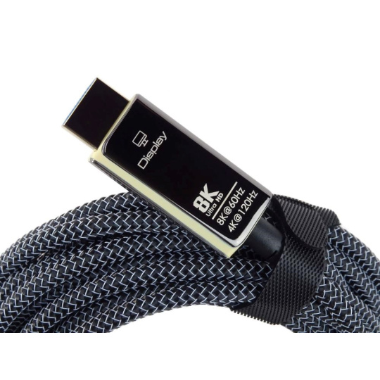 Optický HDMI 2.1 Ultra High Speed 8K@60Hz alebo 4K@120Hz kábel slúži na prepojenie dvoch audio/video zariadení cez moderné HDMI rozhranie, ako je napr. HD-DVD/BluRay prehrávač a LCD/Plazma televízor. Kábel prenáša digitálny zvuk aj obraz a podporuje digitálnu ochranu obsahu HDCP.